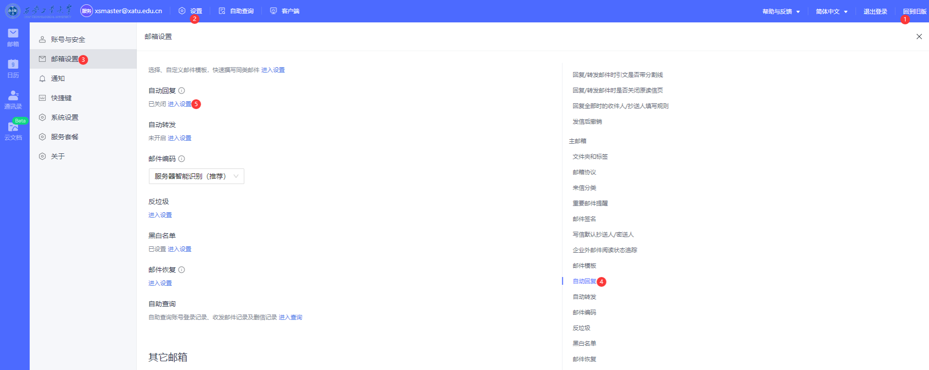 校园邮箱设置自动回复方法